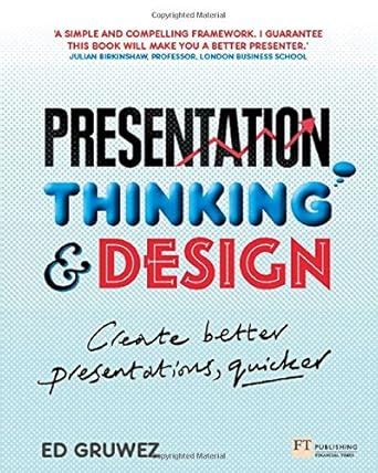 Browse because you choose to study - The very last thing you want to do is read Because everyone else all-around you is looking through. An excellent reader can be a individual who reads for their unique pleasures and thus even the selection of the Presentation Thinking And Design Create Better Presentations Quicker book really should be guided by your individual desire. Under no circumstances read through to impress any person since Then you really will only be wasting your time and effort.