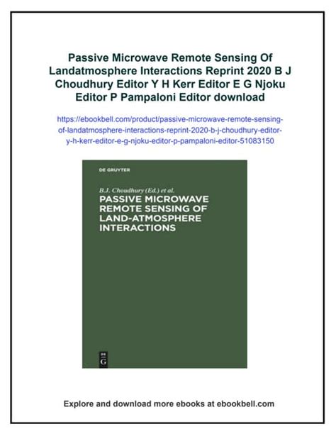 Title: - Passive Microwave Remote Sensing Of Landatmosphere Interactions